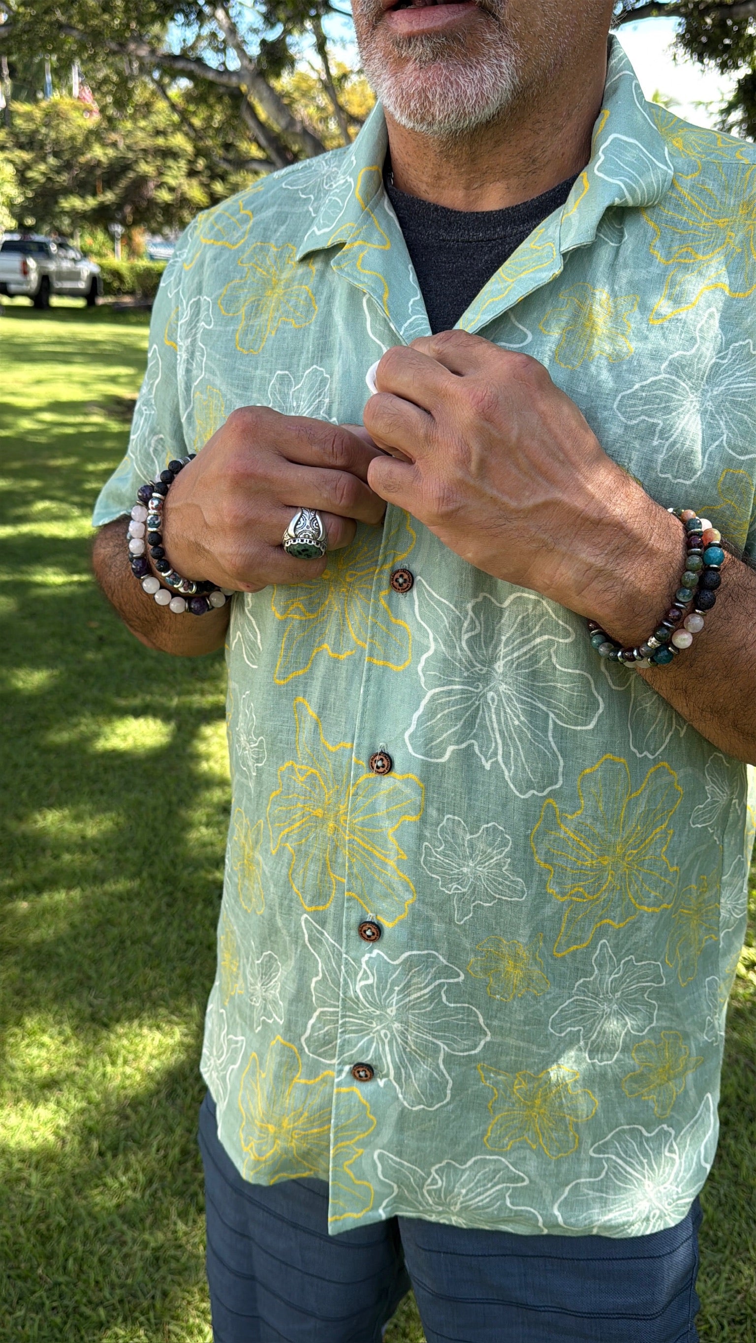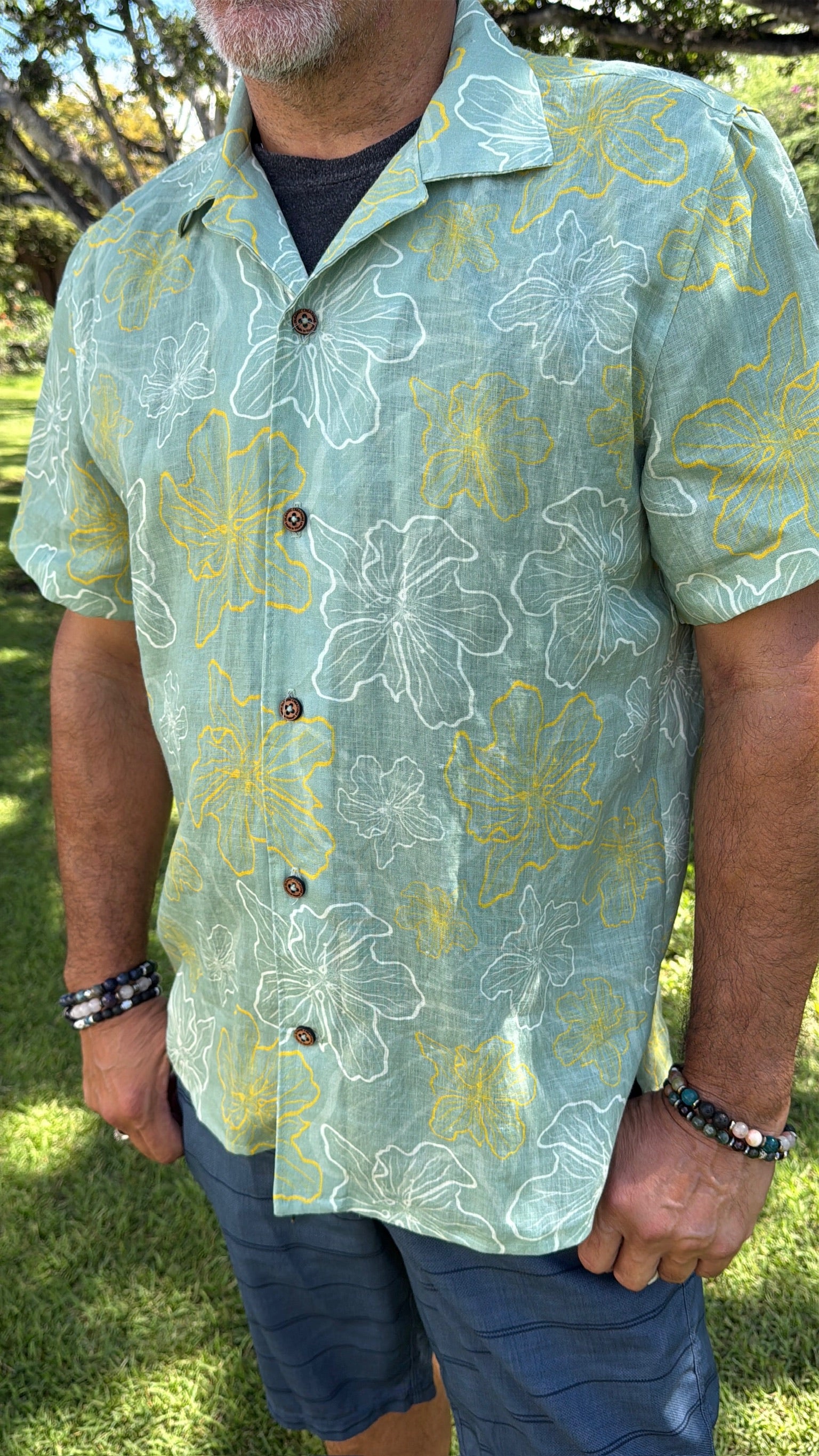 The Linen Aloha Shirt is ready to become your go-to favorite. Crafted from the finest flax and adorned with buttons carved from reclaimed wood sourced right from Hawai'i’s Big Island.