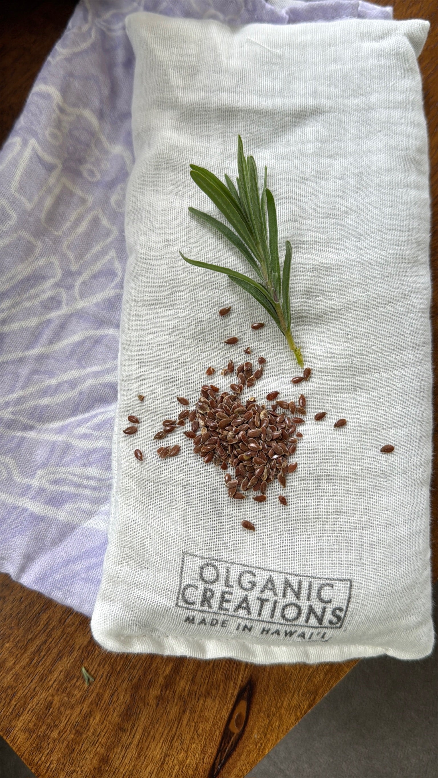 Get ready to relax with the perfect weight! Just sit or lay back, put it over your eyes, and let it do its magic. Made with organic flaxseed, organic lavender buds, organic cotton, and printed with organic inks.