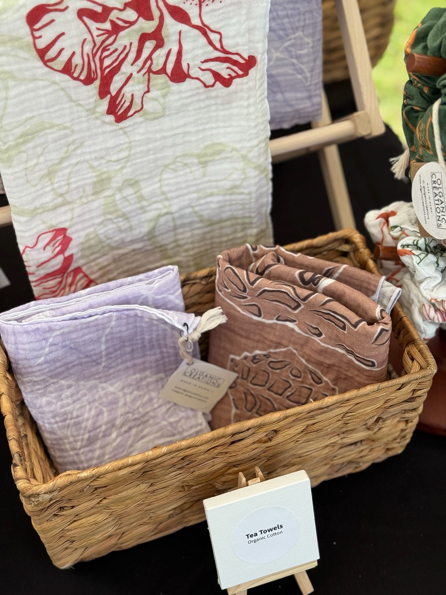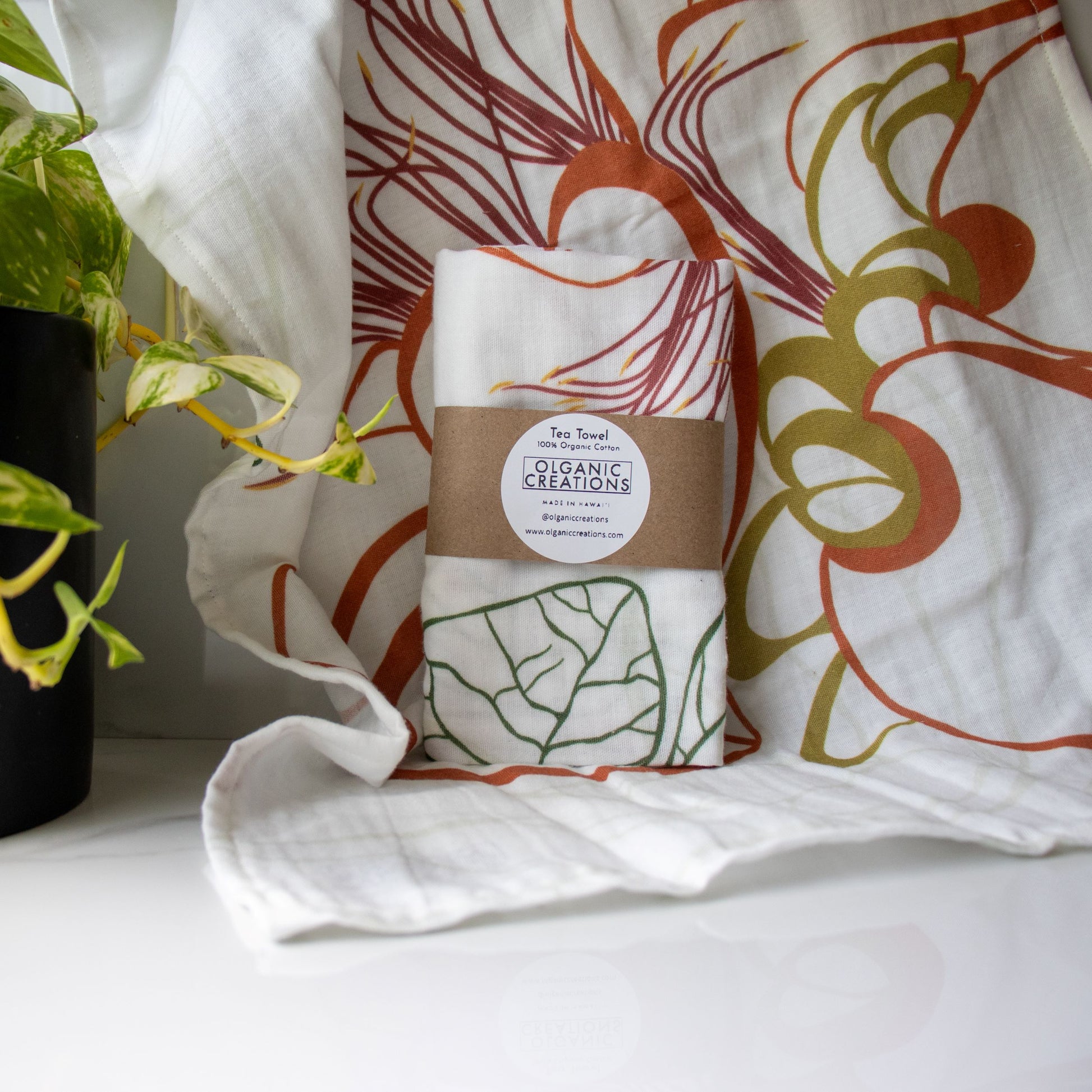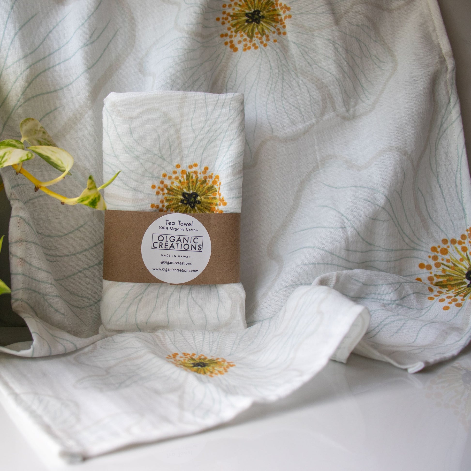 My own unique print pattern is lovingly crafted onto premium quality 100% Organic Cotton Double Gauze fabric using organic inks. Measuring approximately 16" x 27".
