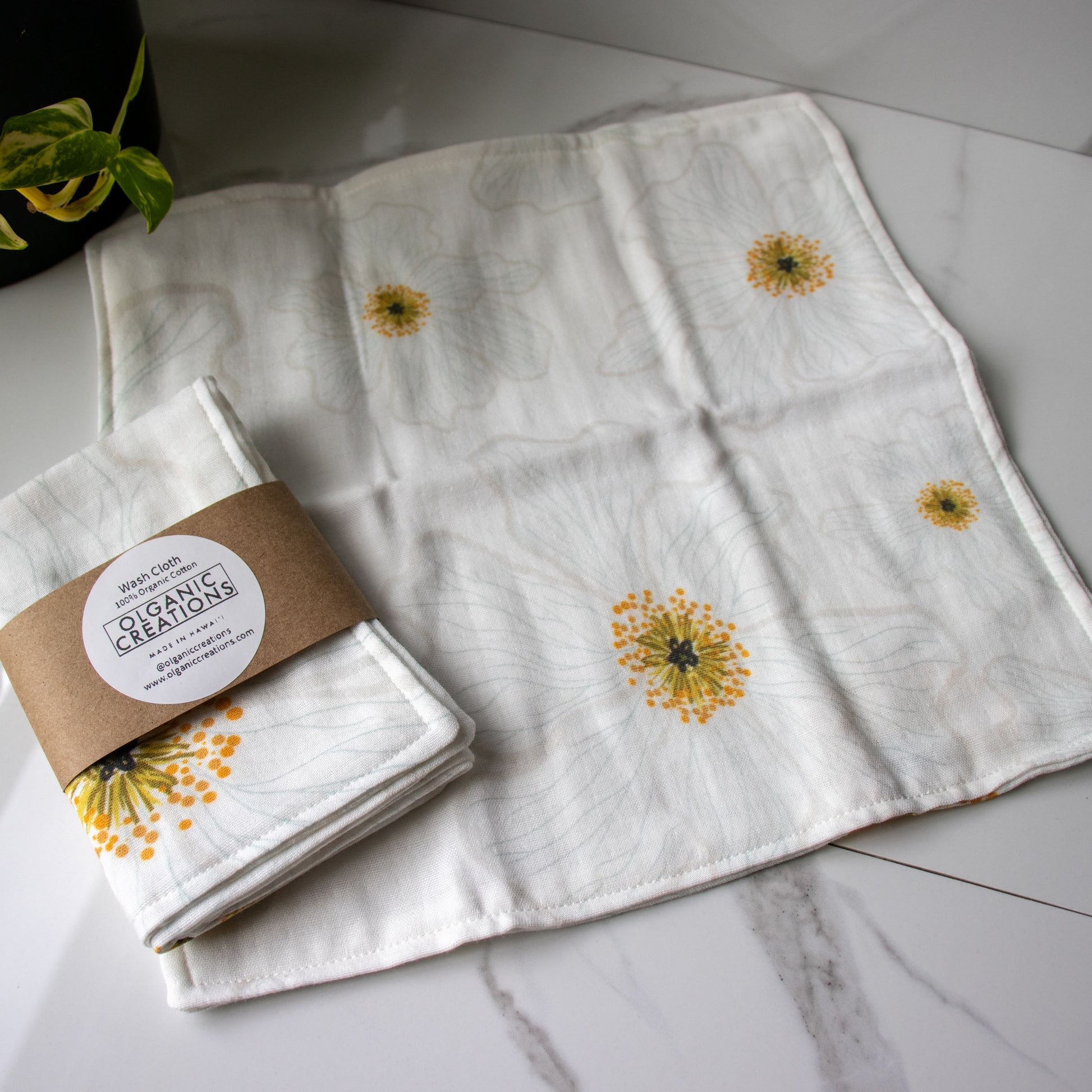 Made with a touch of aloha, these wash cloths are crafted from premium quality 100% organic cotton and vibrant organic inks. Measuring approximately 11" x 11", they dry quickly and feature a unique print design (my own creation, of course).